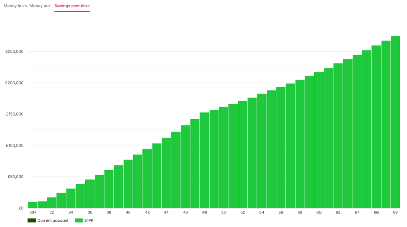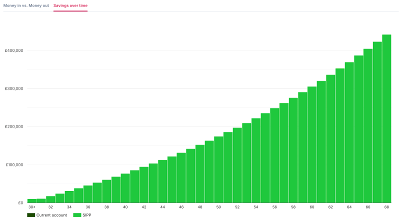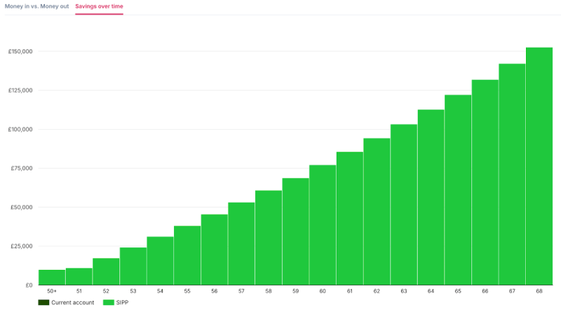 • Investor B ends up with a SIPP worth around £152,600 at age 68.