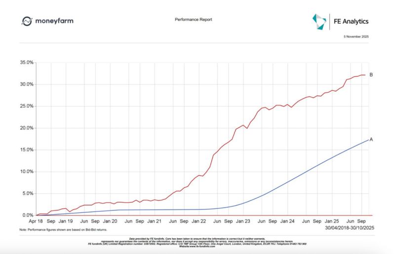 While both investors paid in the exact same amount of net contributions (around £108,000), as you can see below the difference in returns is stark:
