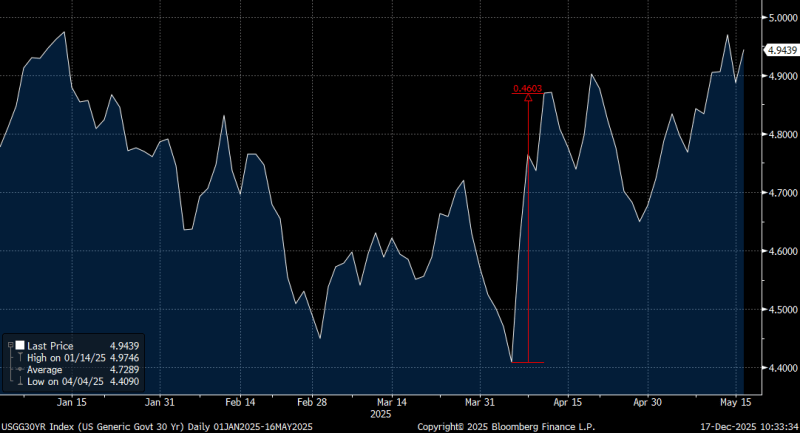 The chart below shows US 30-year Treasury yields and their movement during the market turmoil in April.