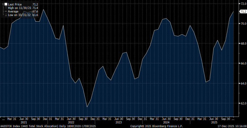 The chart below shows the total equity allocation of US investors, according to the AAII monthly survey.