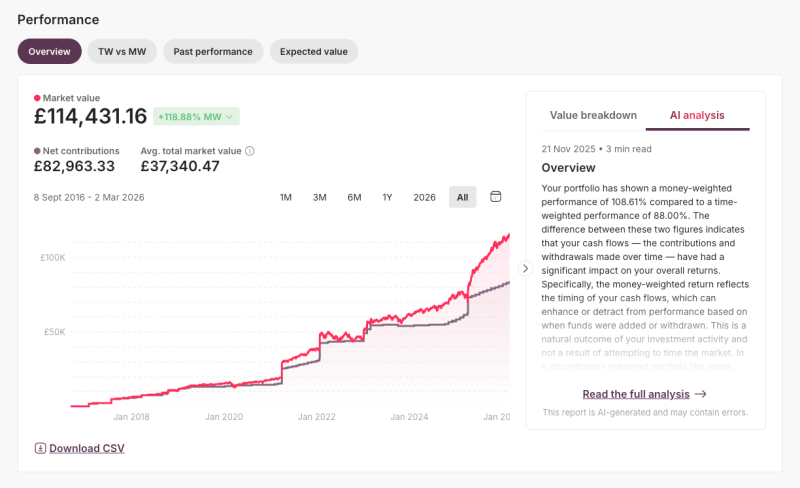 Performance in context: Bastian provides an accessible commentary on how your portfolio has performed, helping you understand the bigger picture without needing to analyse charts or dig through data.