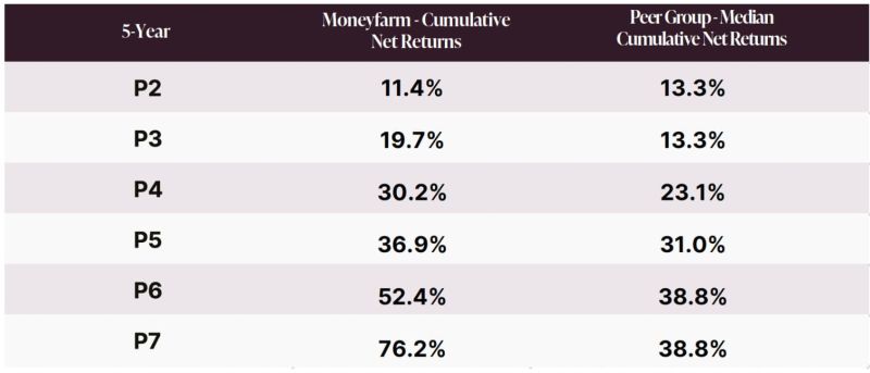 And while we’re able to offer lower fees than traditional providers, we certainly don’t compromise on quality. Below, you can see how our portfolios have performed compared with the wider industry peer group (ARC).