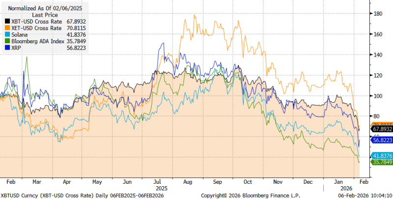 L’inizio del 2026 non ha portato l’inversione di tendenza sperata. Al contrario, abbiamo assistito a una rotazione massiccia dei flussi istituzionali verso asset “risk-free” (titoli di Stato governativi) e settori difensivi, drenando liquidità dagli asset speculativi. La narrativa di “store of value” è stata temporaneamente messa in discussione: il mercato ha trattato questa asset class più come un titolo tecnologico ad alto rischio che come un bene rifugio.