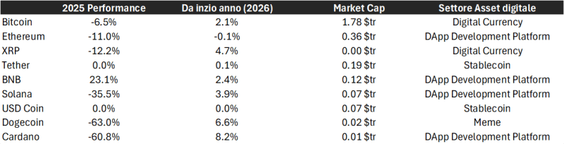 Dicembre 2025 ha chiuso un anno che, nel complesso, si è rivelato inferiore alle attese per il mercato delle criptovalute. Sebbene la performance in sé non sia stata particolarmente negativa – considerando che asset ad alta volatilità come Bitcoin ed Ethereum sono per loro natura soggetti a fasi di rendimenti annui negativi – il sentiment complessivo è stato quello di un risultato inferiore alle aspettative e di un potenziale non pienamente espresso.